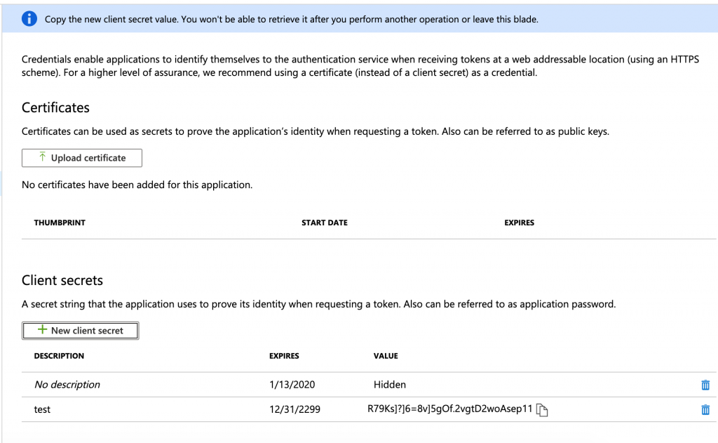 1. Inside the created app registration, click Certificates & Secrets.